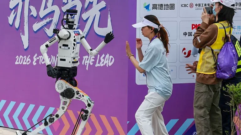 PRIMICIA.- Robots y humanos han vuelto a medirse por segundo año consecutivo en la media maratón celebrada en Pekín en...