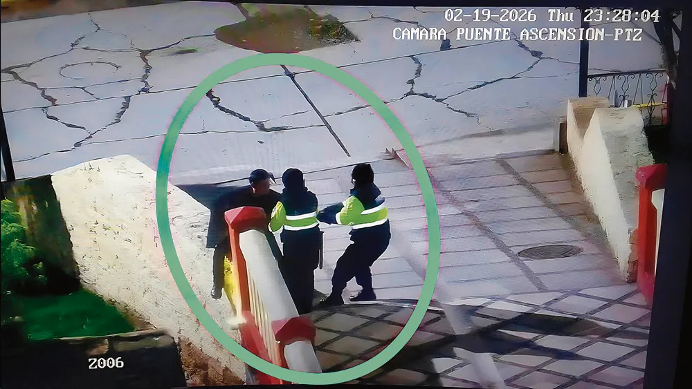 PRIMICIA.- Una rápida intervención del Cuerpo de Serenazgo de la Municipalidad Distrital de Ascensión evitó una posible tragedia la noche reciente, luego de que la Central de Videovigilancia detectara a un ciudadano trepado sobre uno de los pilotes del histórico Puente Colonial de Ascensión, en una zona de alto riesgo con peligro de caída al río Ichu.