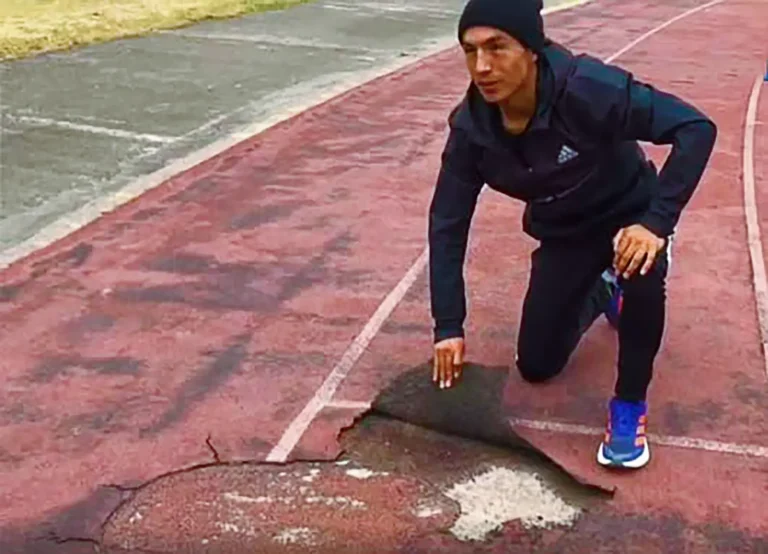 PRIMICIA.- Atletas protestaron ayer con la denominada zapatillas caídas, en el estadio Huancayo, solicitando el cambio de la pista sintética,...