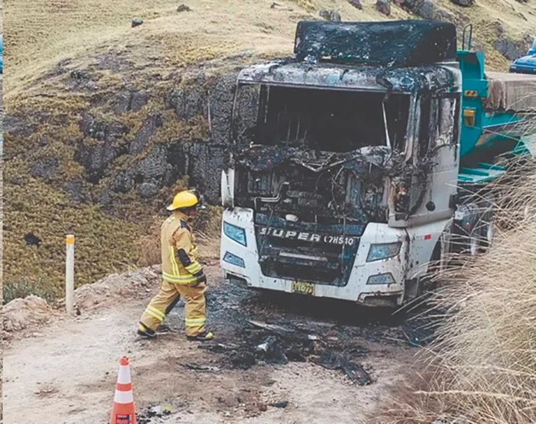 PRIMICIA. - La mañana de ayer se vio interrumpida, donde un camión volquete Sinotruk, con placa AWI-771, se incendió a...