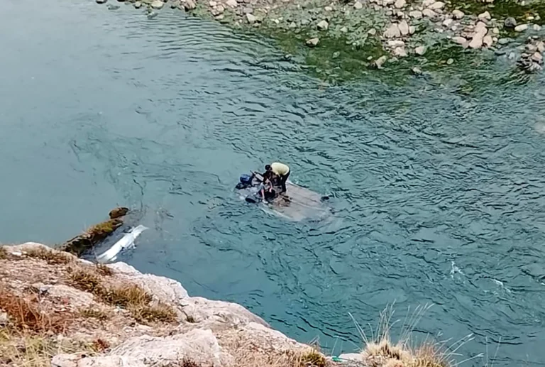 PRIMICIA.- Un vehículo se precipitó a un precipicio, terminando con las llantas arriba y sumergido entre las aguas del “Río...