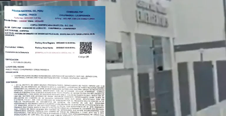 PRIMCIA. - Karen Osores Fernández, jefa del Centro de Salud de Paragsha, denunció ante la Comisaría de Simón Bolívar la...