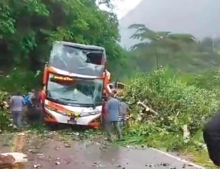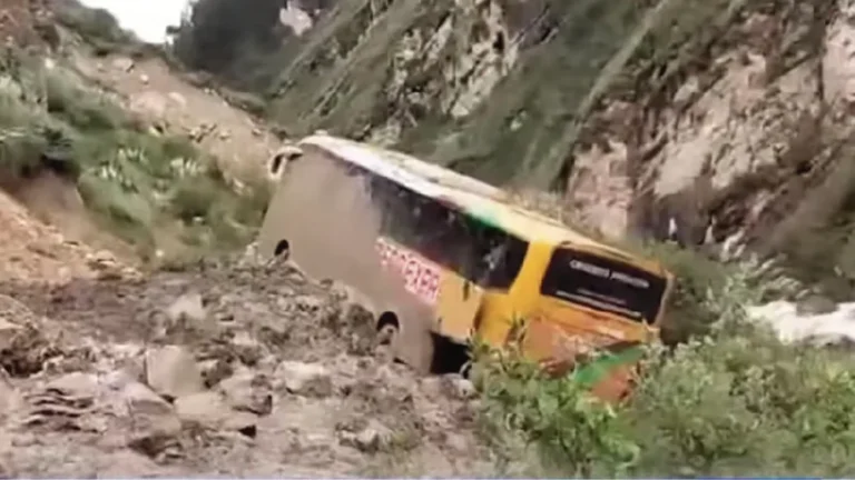 Chofer vivió segundos de terror cuando un huaico arrastró su bus al borde del abismo en Pasco. PRIMICIA. - Un...