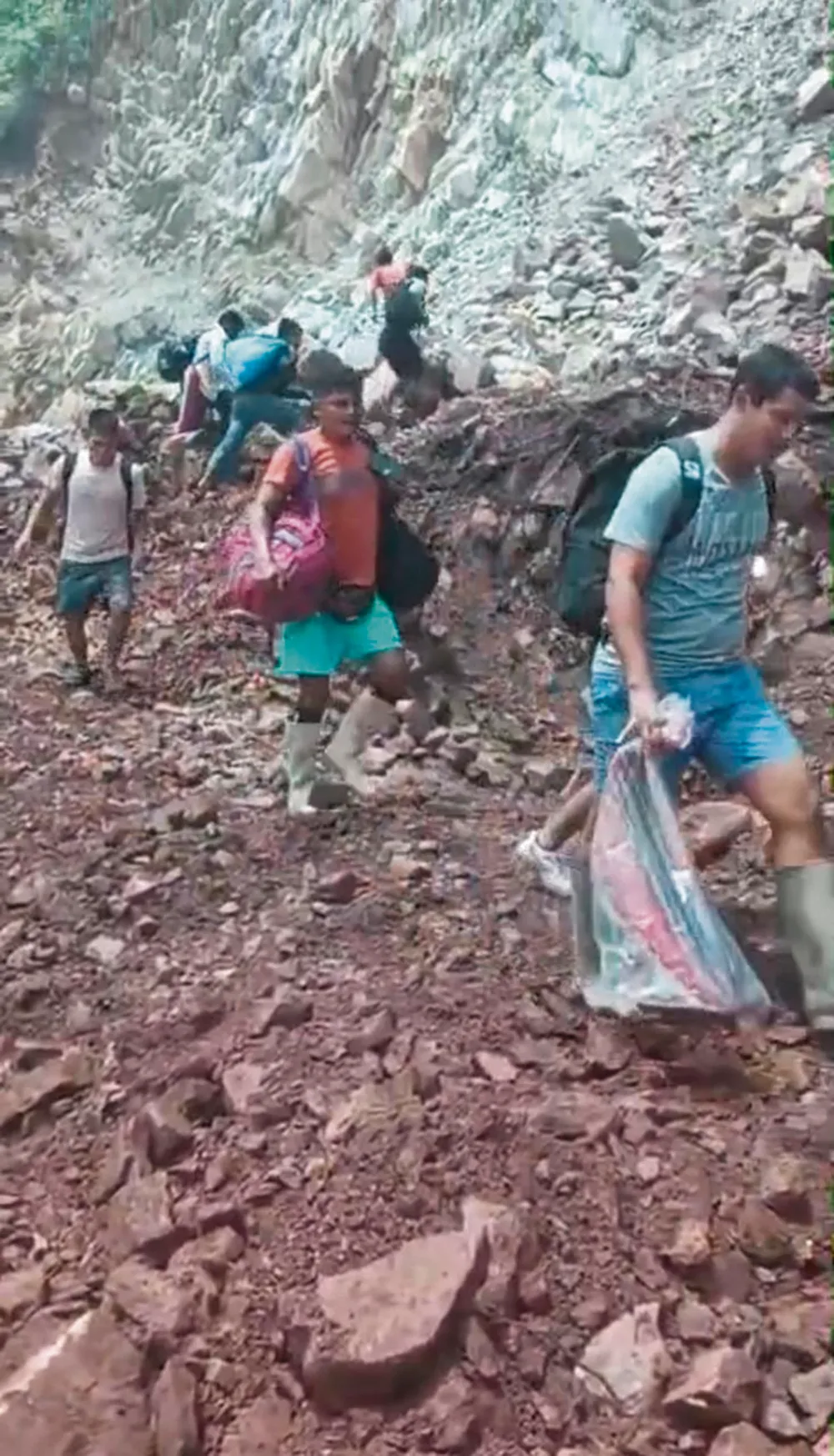 Sin embargo, otros pobladores arriesgando su integridad física tratan de cruzar por la zona, pese a las constantes lluvias y caída de huaicos.