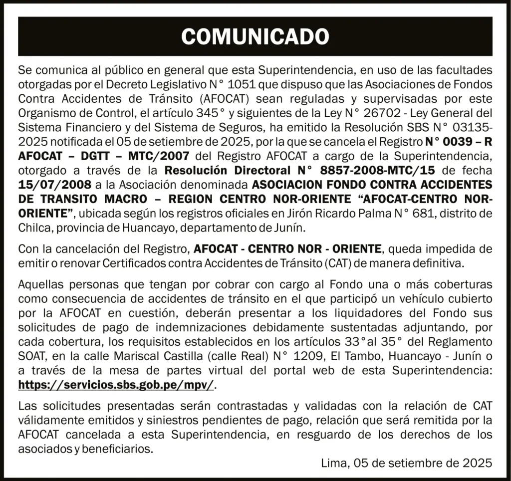 COMUNICADO – VIERNES 12/SET/2025