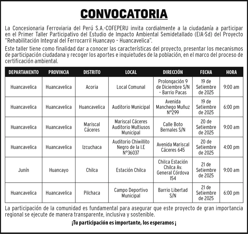 PROYECTO «REHABILITACIÓN INTEGRAL DEL FERROCARRIL HUANCAYO – HUANCAVELICA»