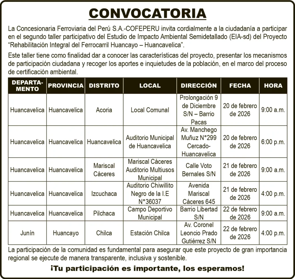 PROYECTO «REHABILITACIÓN INTEGRAL DEL FERROCARRIL HUANCAYO – HUANCAVELICA»