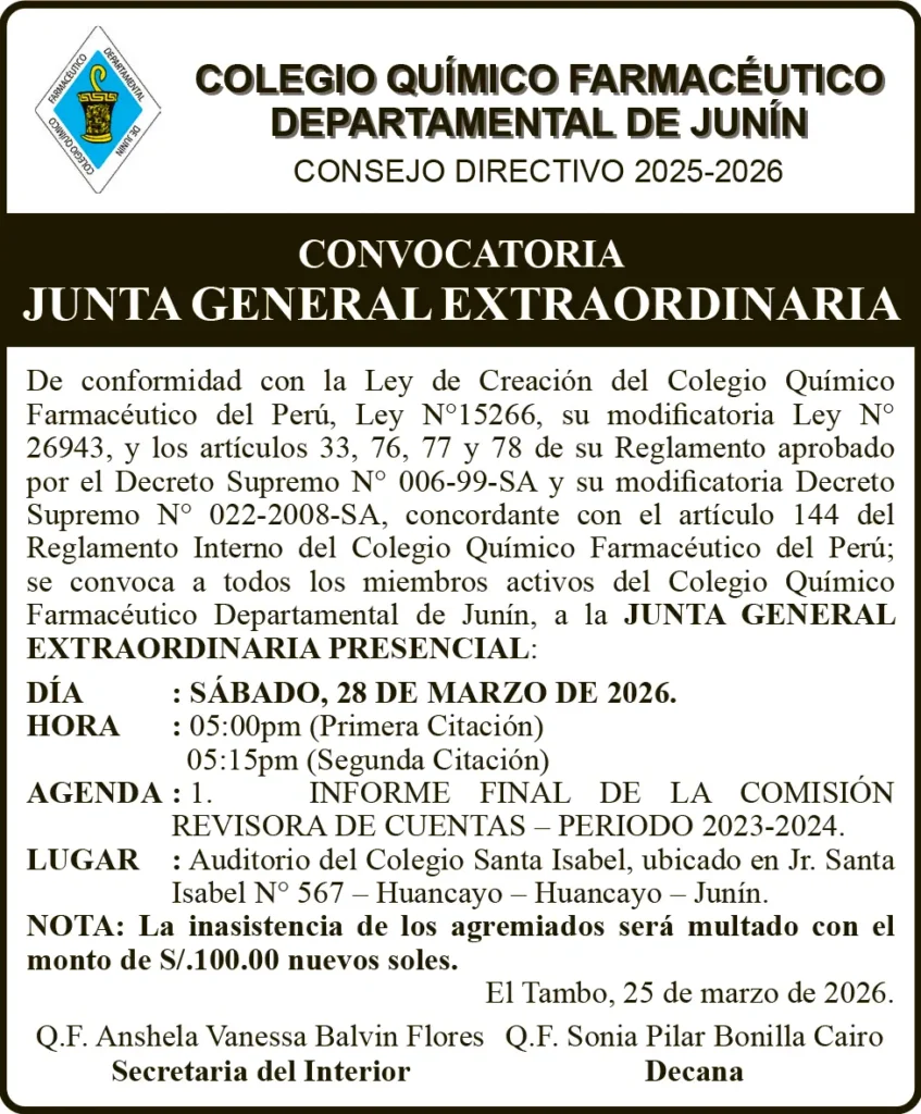 CONVOCATORIAS – MIÉRCOLES 25/MAR/2026