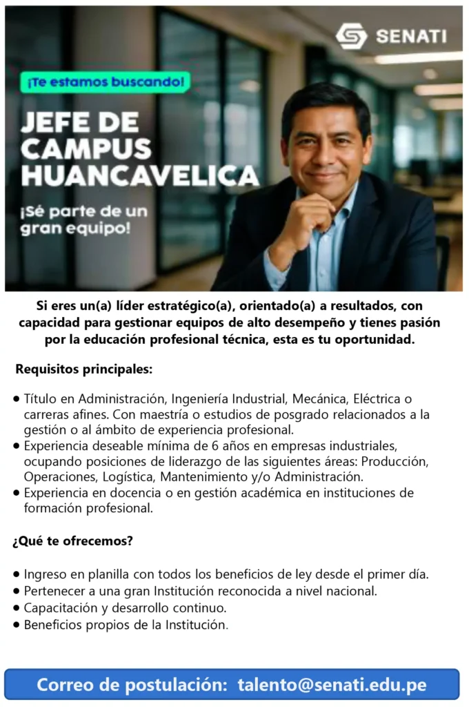 CONVOCATORIAS CONVOCATORIAS – VIERNES 25/JUL/2025 25 de julio de 2025 SENATI¡TE ESTAMOS BUSCANDO!JEFE DE CAMPUS HUANCAVELICA¡SE PARTE DE UN GRAN EQUIPO!Post navigationAnterior HUAYTARÁ: TRÁILER CAE A PENDIENTE EN VÍA LIBERTADORESPróximo RECTIFICACIÓN DE PARTIDA – VIERNES 25/JUL/2025