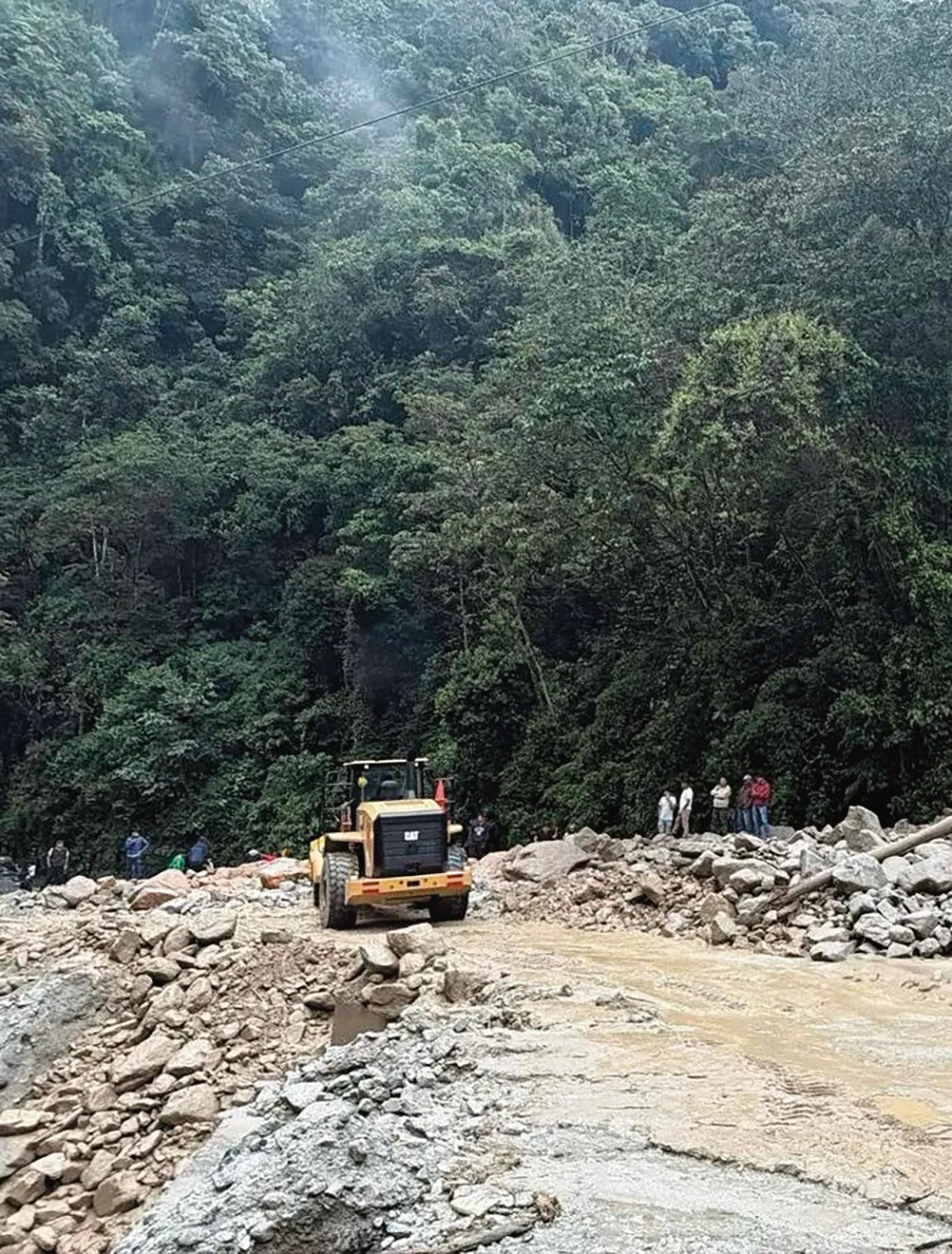 En horas de la mañana, movilizaron maquinaria pesada para ejecutar trabajos de limpieza en la zona a fin de habilitar la vía que se encuentra congestionada.