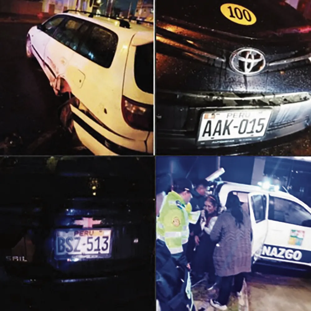 El violento impacto fue ocasionado presuntamente por el conductor del vehículo Toyota (placa AAK-015), quien conducía en evidente estado de ebriedad. Según testigos y agraviados, el sujeto perdió el control de su unidad e impactó contra un automóvil Chevrolet (BSZ-513). Debido a la fuerza del golpe, este último terminó colisionando contra un tercer vehículo, un Toyota Caldina (AAC-201).