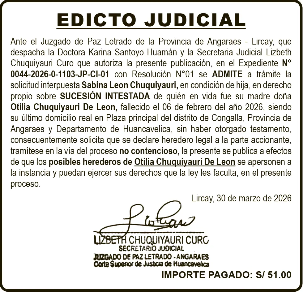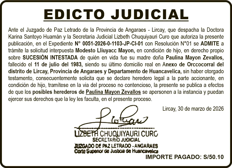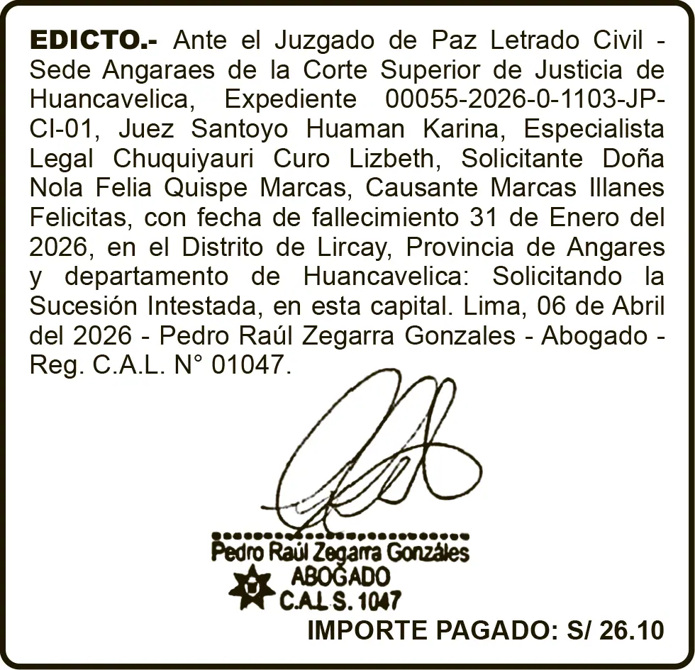 EDICTO JUDICIAL HUANCAVELICA – JUEVES 09/ABR/2026