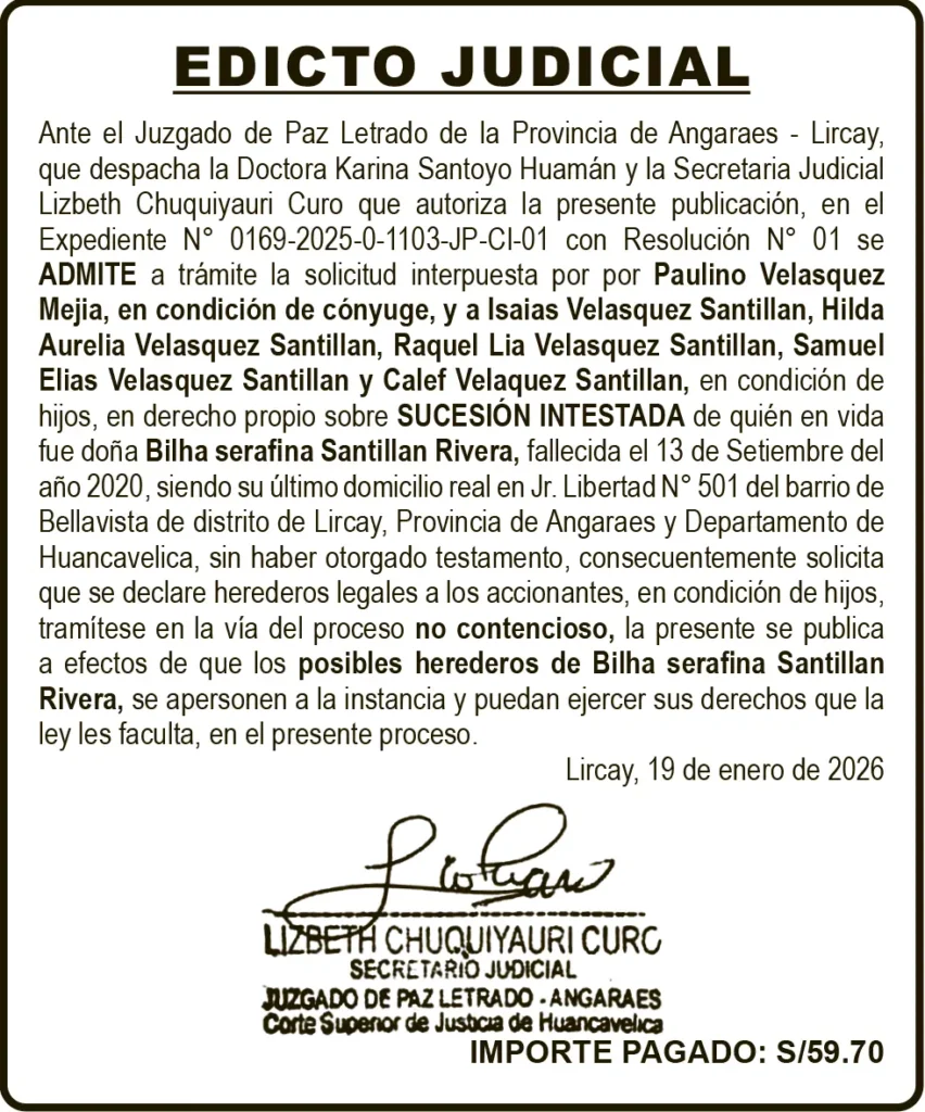 EDICTO JUDICIAL HUANCAVELICA – MARTES 03/FEB/2026