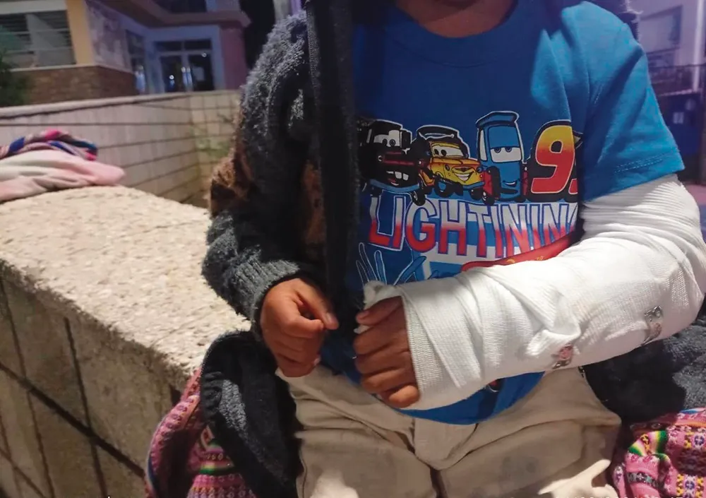 PRIMICIA.- Un niño de 4 años de edad, natural de Macon, sufrió una caída en su domicilio, el niño que está en cuidado de su abuela, lo llevó al Hospital de Tarma, donde le tomaron Placas de Rayos “X” por la fractura de su brazo derecho.