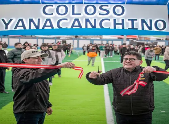 La obra, entregada con festejos por el gobernador regional Juan Luis Chombo Heredia y el alcalde distrital Julio Cajahuaman Quispe, presenta una falla crítica: las torres de iluminación fueron instaladas dentro del campo de juego. Esta irregularidad vulnera los reglamentos de la Federación Peruana de Fútbol (FPF) y normativas internacionales, inhabilitando el recinto para albergar partidos de la Liga 2, Liga 3 o instancias decisivas de la Copa Perú.