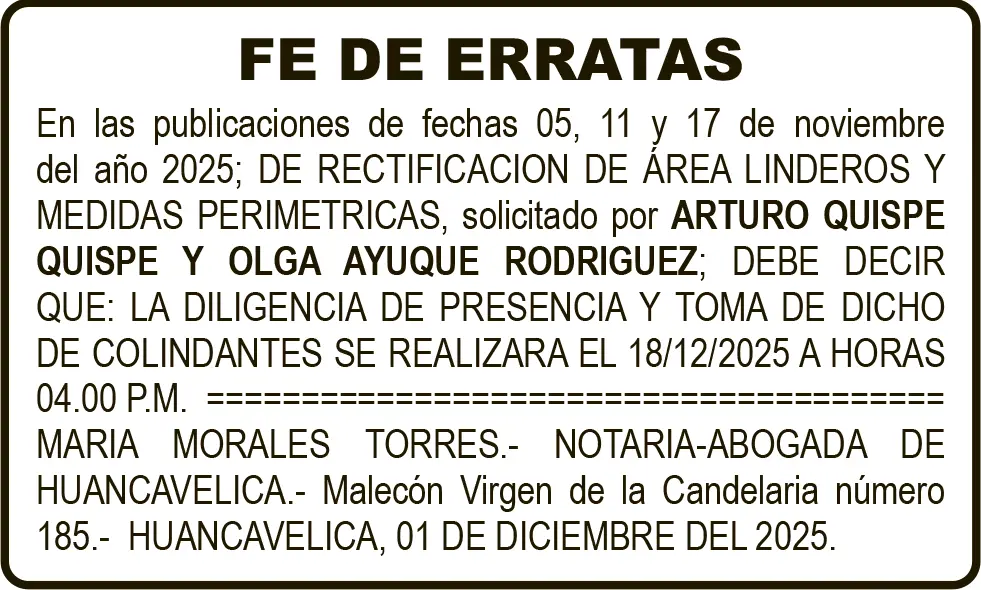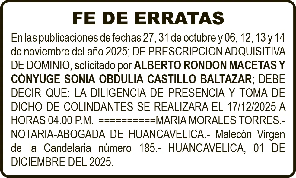FE DE ERRATAS – JUEVES 04/DIC/2025