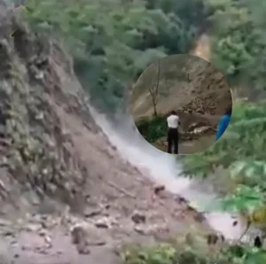 Se puede evidenciar el riego de desprendimiento de rocas a la vía, el cual no se encuentra señalizada como riesgo, situación que es un peligro para los usuarios por un posible desplazamiento.