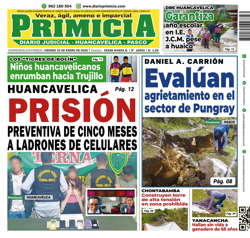 PRIMICIA.- Los consejeros regionales de Pasco, Juan Chávez Mauricio y Carolina Caqui Calixto, realizaron trabajos de fiscalización en el proyecto «EMP. PE. 18 (DV. Uchumarca) – Golac Majada – Pocco – Uchumarca – Gorina Alta – Huangur – Yurac Huanca – Quiulacocha – Cerro de Pasco – EMP. PE 3N – (DV. Cerro de Pasco) – Provincia Daniel Alcides Carrión y Pasco – Departamento de Pasco. CUI N° 2234342.»