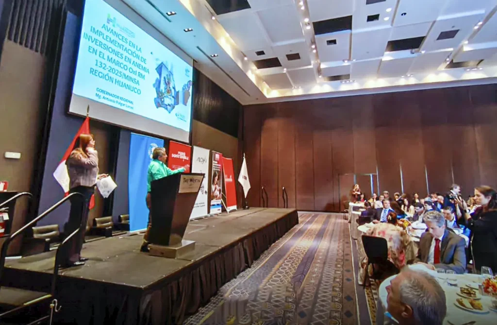 PRIMICIA.- El gobernador regional de Huánuco, Antonio Pulgar Lucas, participó en el encuentro nacional “Unidos contra la anemia: alianzas transformadoras en OxI”, donde reafirmó el compromiso de su gestión para reducir de manera sostenida la anemia materno-infantil.