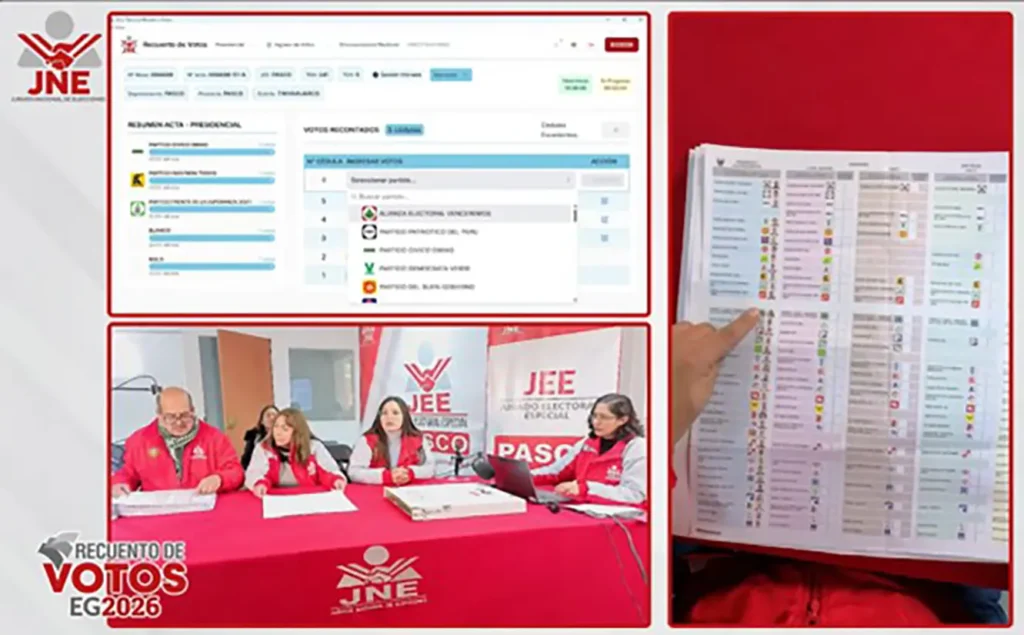 PRIMICIA.- El Jurado Electoral Especial (JEE) Pasco inicio con las audiencias de recuento de votos de las mesas de sufragio correspondientes en el marco de las Elecciones Generales 2026 (EG 2026).