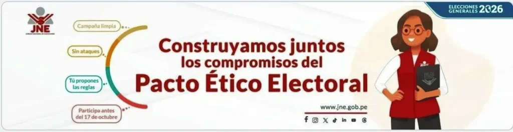 PRIMICIA.- Los ciudadanos del país podrán proponer los compromisos que los candidatos, candidatas y organizaciones políticas asumirán para el desarrollo de una campaña electoral pacífica, limpia, transparente y propositiva durante las Elecciones Generales 2026 (EG 2026), gracias a la campaña “Construyamos juntos los compromisos del Pacto Electoral” que impulsa el Jurado Nacional de Elecciones (JNE).