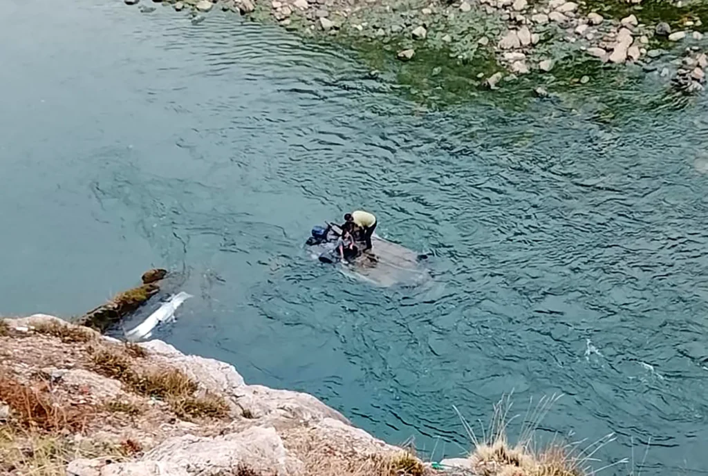 PRIMICIA.- Un vehículo se precipitó a un precipicio, terminando con las llantas arriba y sumergido entre las aguas del “Río Mantaro” en la vía de la carretera central que une la Oroya-Huancayo-Jauja; los ocupantes de la unidad siniestrada salieron a la superficie por su propia cuenta a la espera de ser rescatados.