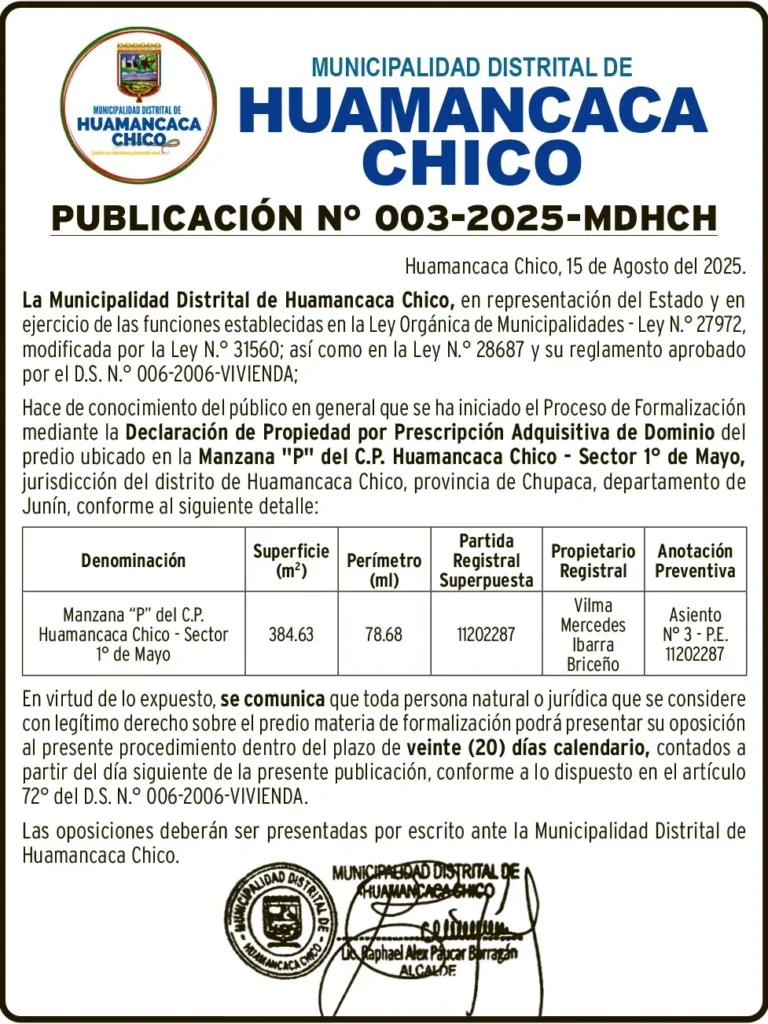MUNICIPALIDAD DISTRITAL DE HUAMANCACA CHICO
