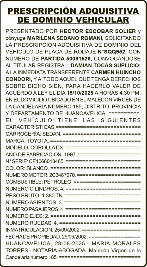 PRESCRIPCIÓN ADQUISITIVA DE DOMINIO VEHICULAR
