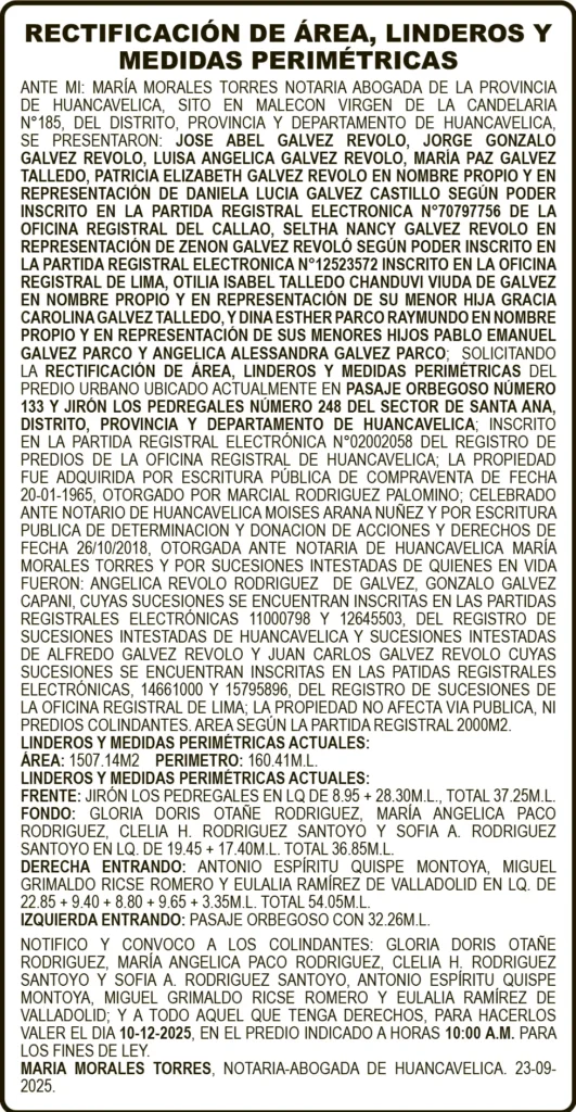RECTIFICACIÓN DE ÁREA, LINDEROS Y MEDIDAS PERIMÉTRICAS