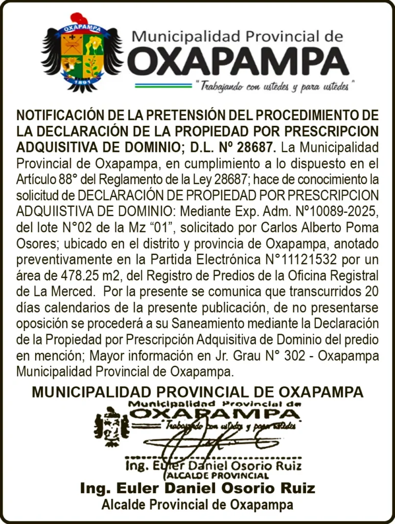 MUNICIPALIDAD PROVINCIAL DE OXAPAMPA