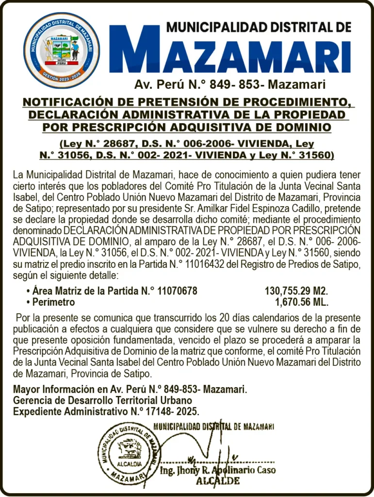 MUNICIPALIDAD DISTRITAL DE MAZAMARI