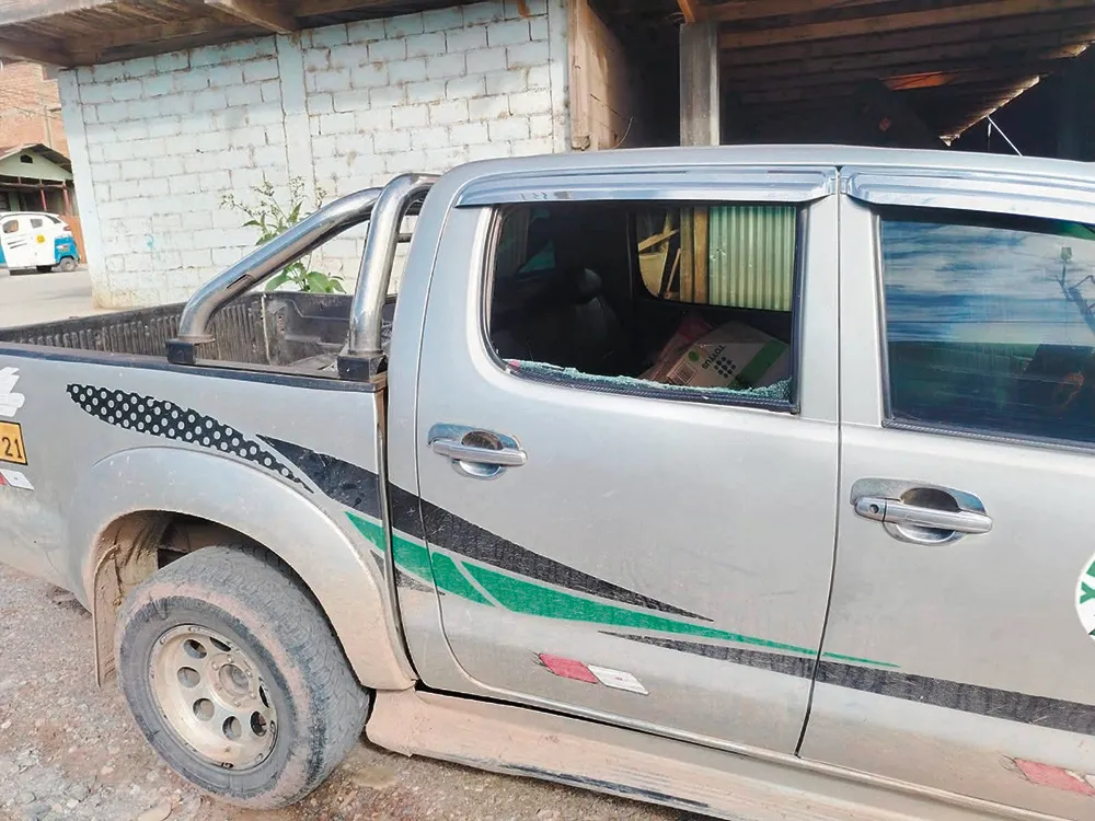 PRIMICIA.- Cobarde ataque en contra del candidato conocido como «Luchito Solís» en el distrito de Villa Rica – Oxapampa al parecer adversarios políticos, estarían enviando a delincuentes a destruir su vehículo y amedrentar a su familia por el gran respaldo que estaría recibiendo en todos los pueblos anexos del distrito de Villa Rica «tierra del café más fino del mundo».