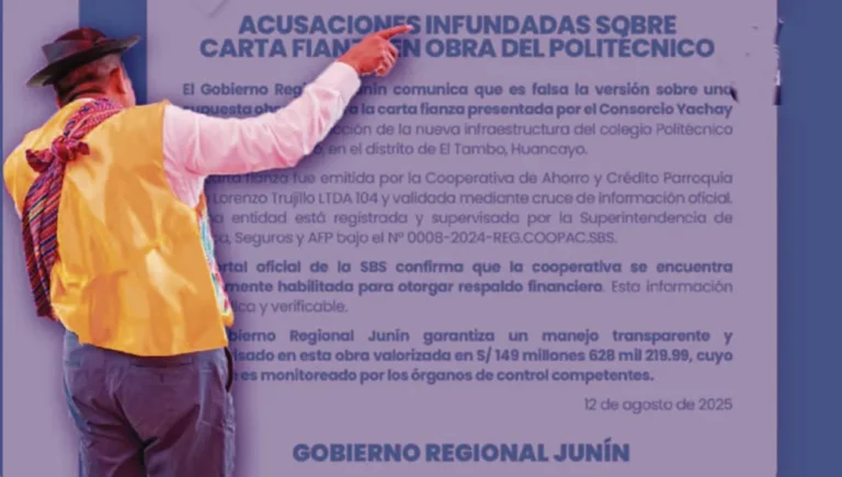 PRIMICIA.- Pese a un comunicado público sobre la denuncia de Infoandes.pe, el Gobierno Regional de Junín, no pudo demostrar que...
