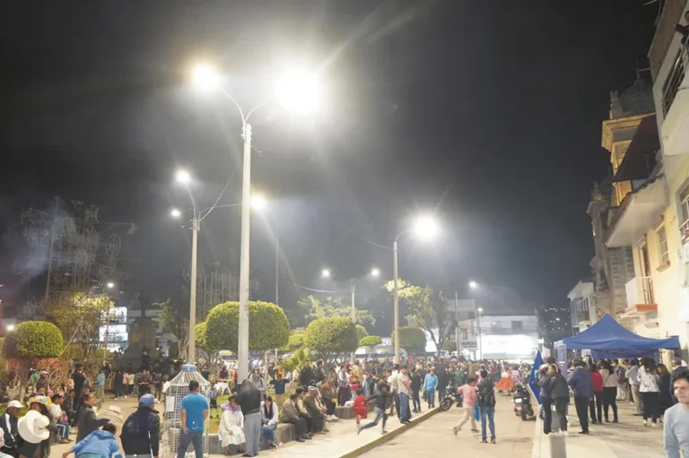 Moderna iluminación mejora la seguridad, facilita el tránsito y embellece este espacio público. PRIMICIA. - Con la presencia del presidente...