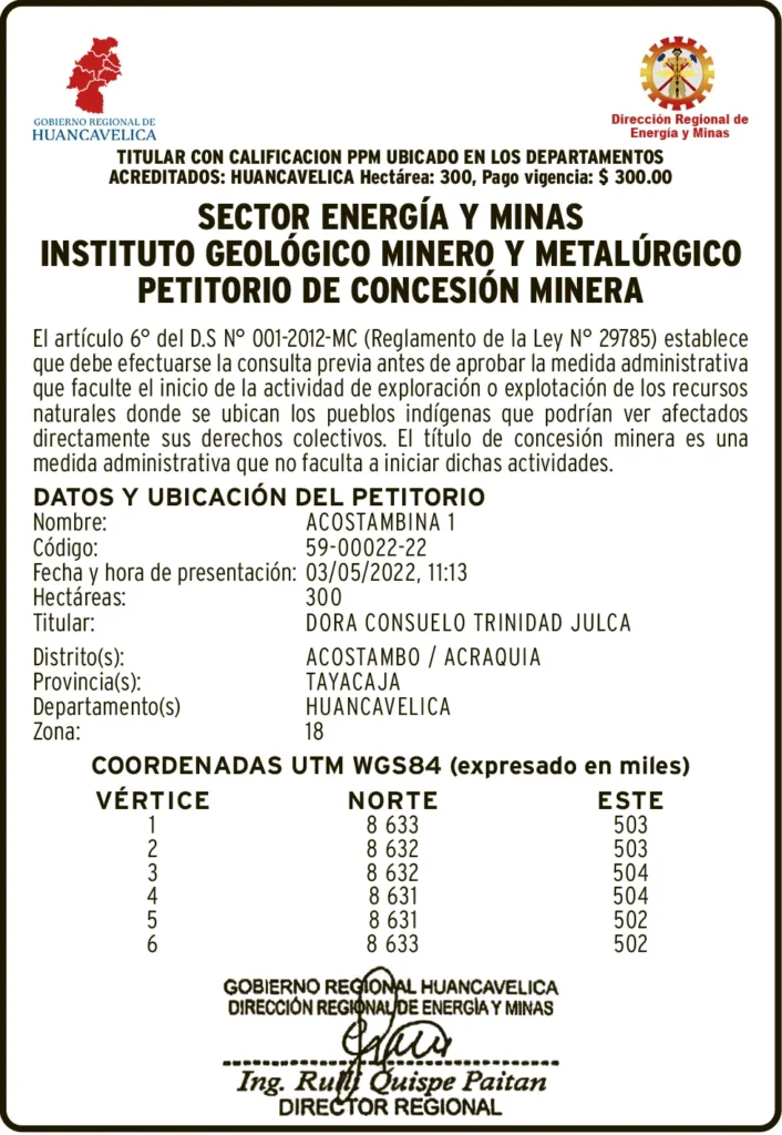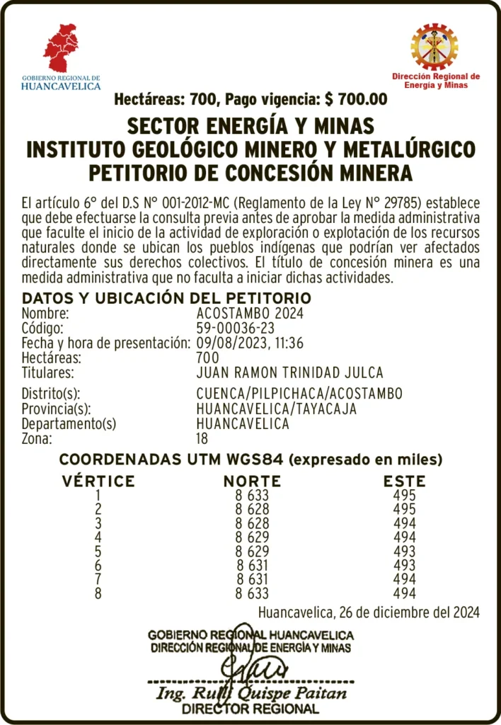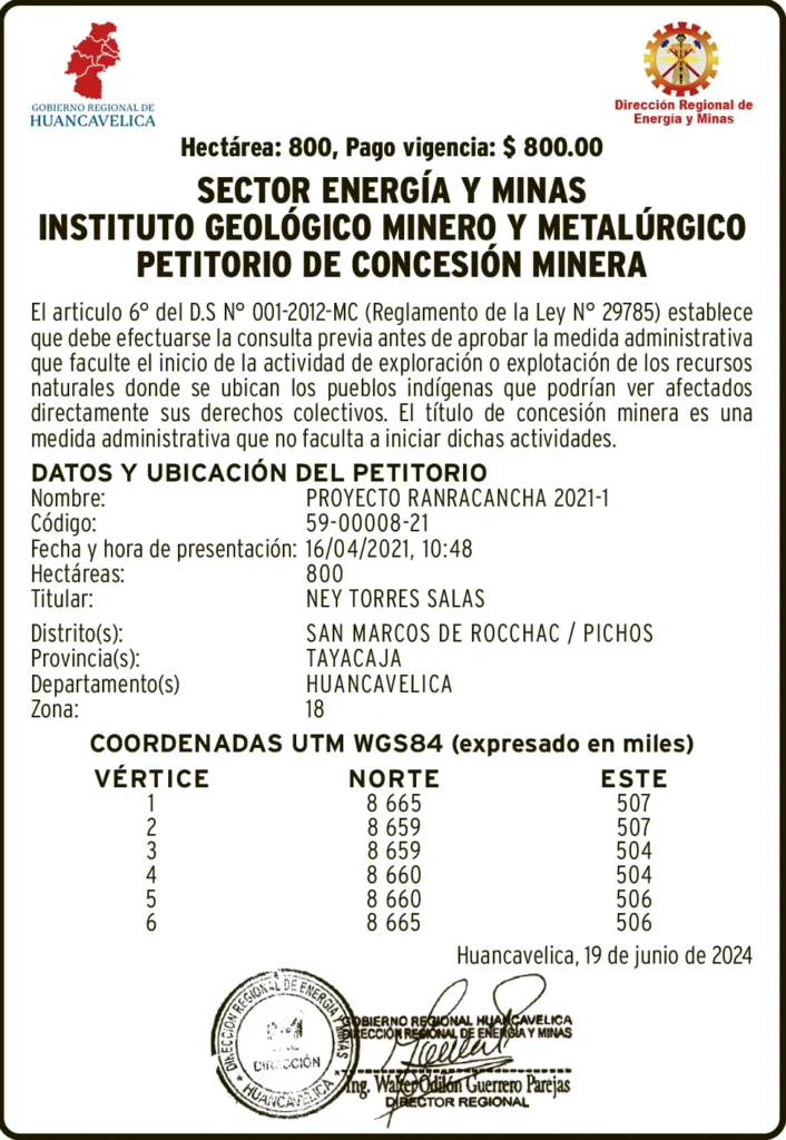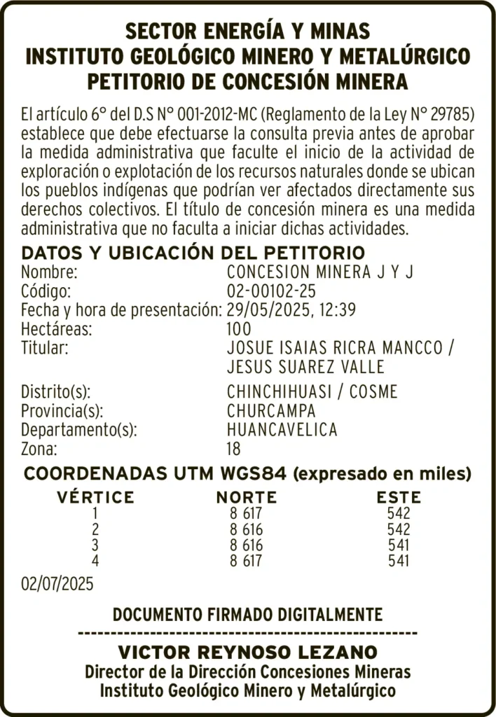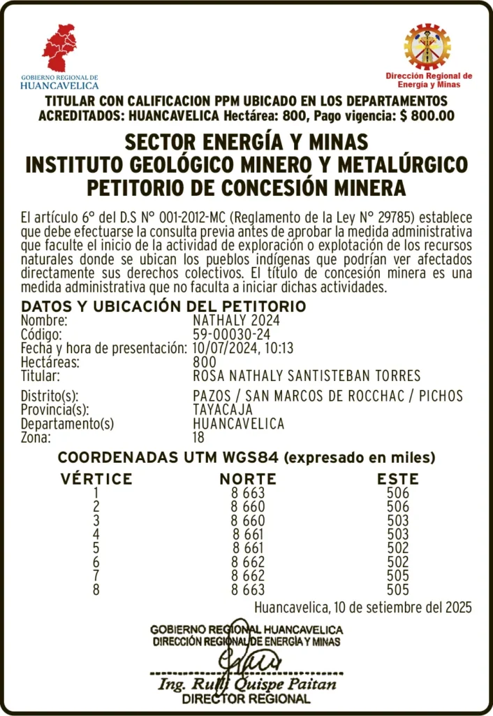 PETITORIO MINERO HUANCAVELICA – JUEVES 09/OCT/2025