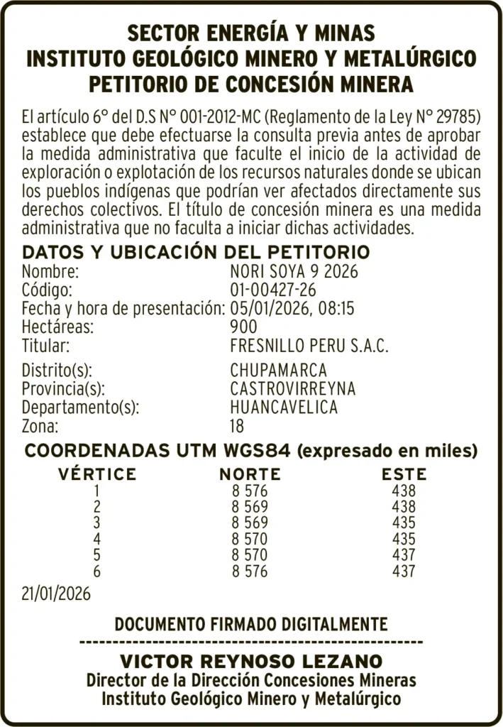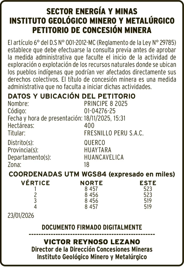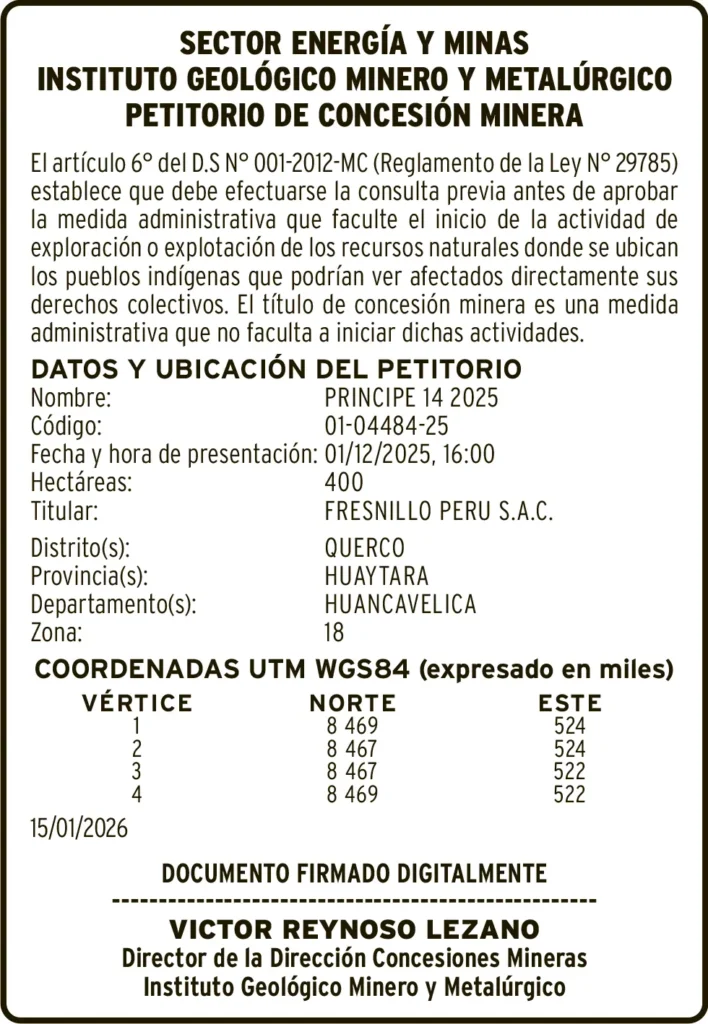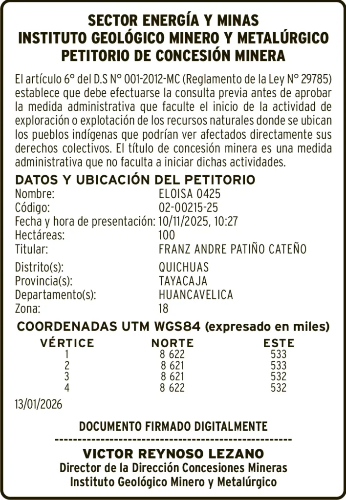 PETITORIO MINERO HUANCAVELICA – LUNES 16/FEB/2026
