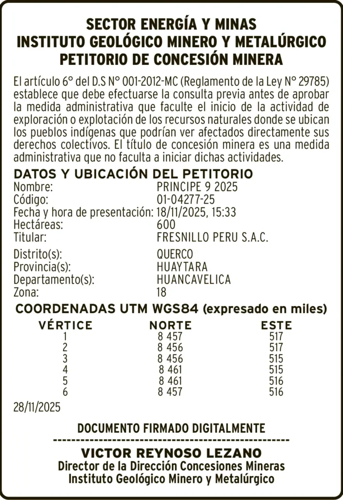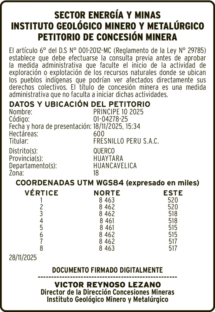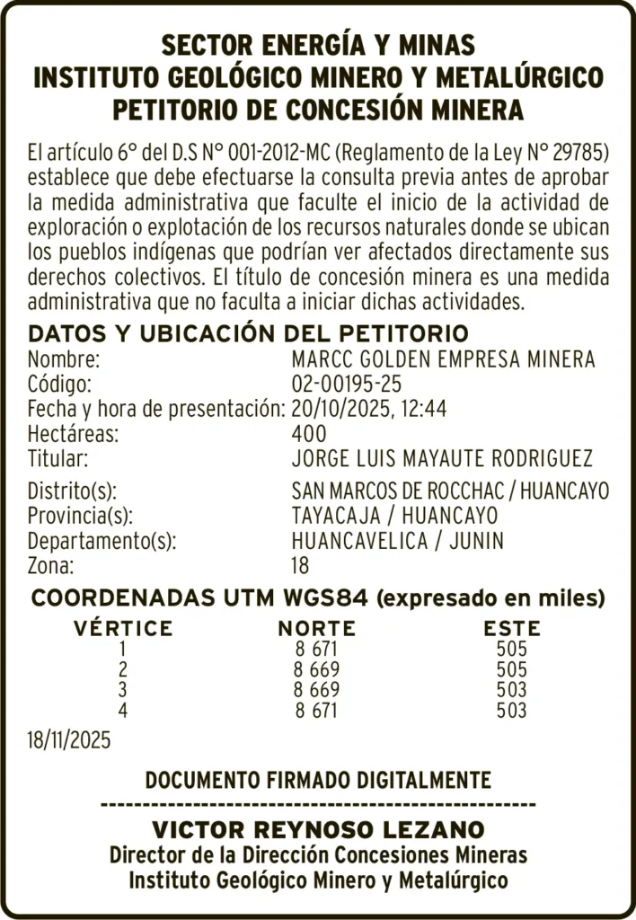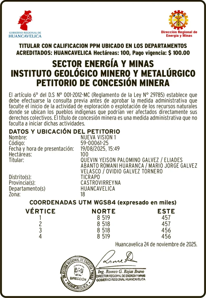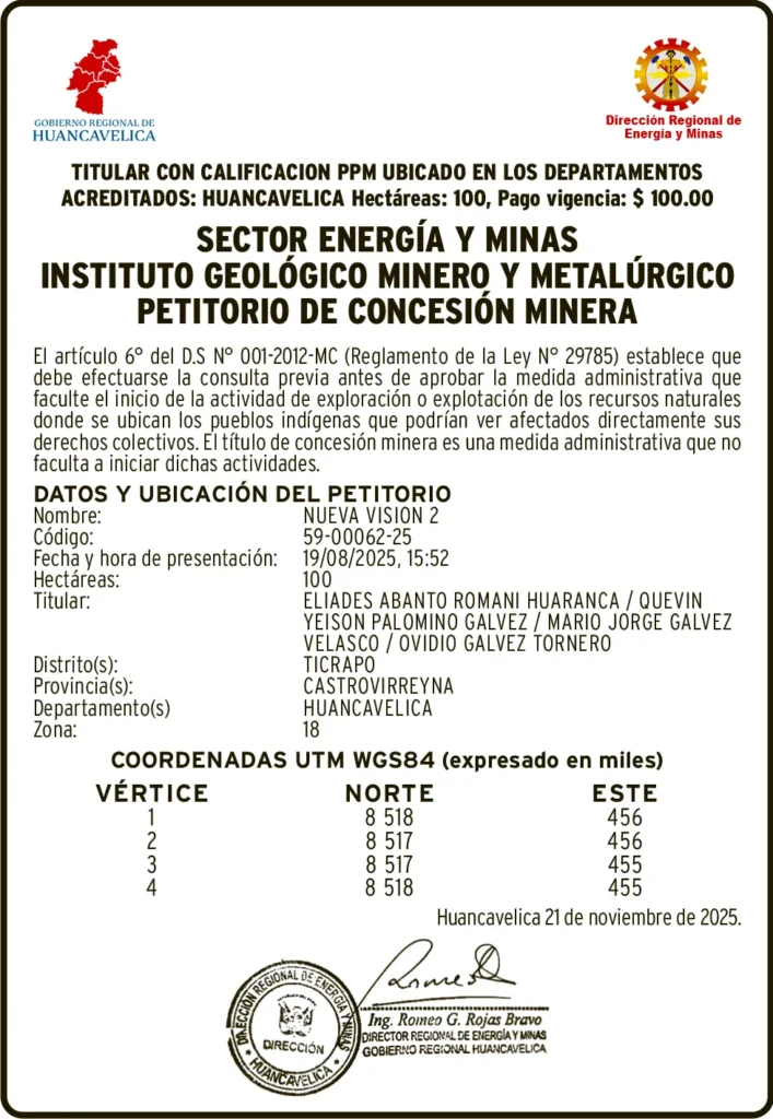 PETITORIO MINERO HUANCAVELICA – LUNES 29/DIC/2025