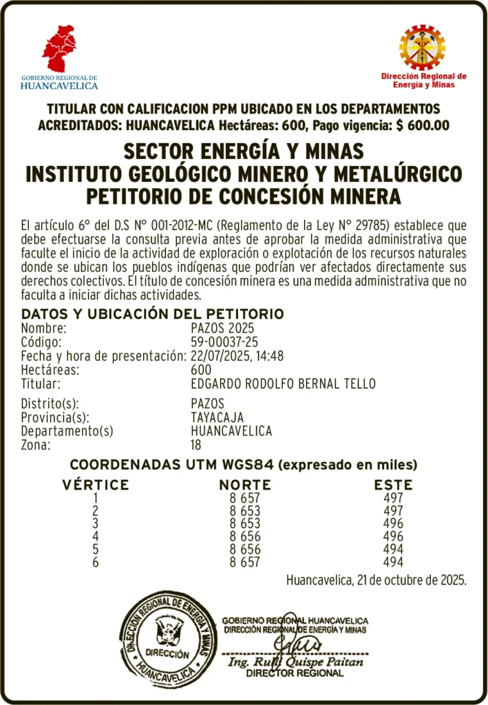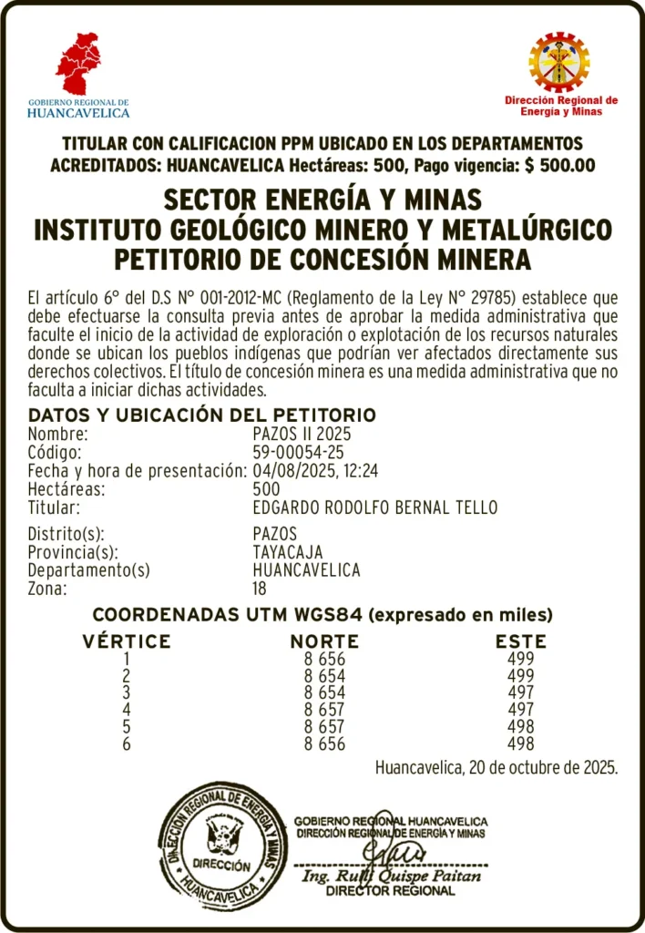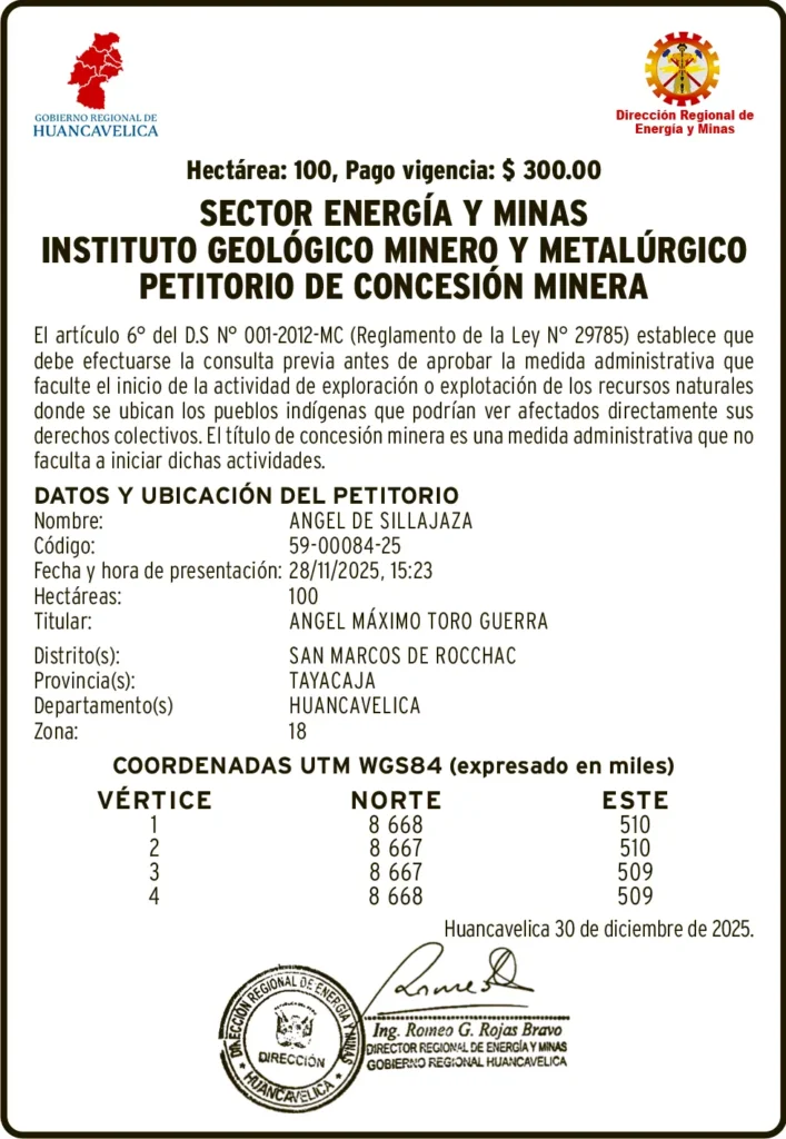 PETITORIO MINERO HUANCAVELICA – MIÉRCOLES 21/ENE/2026