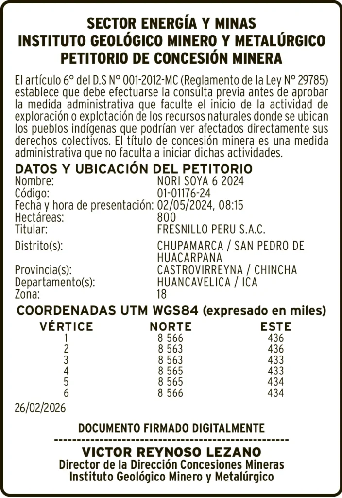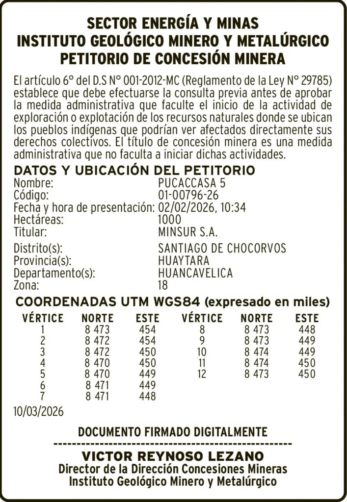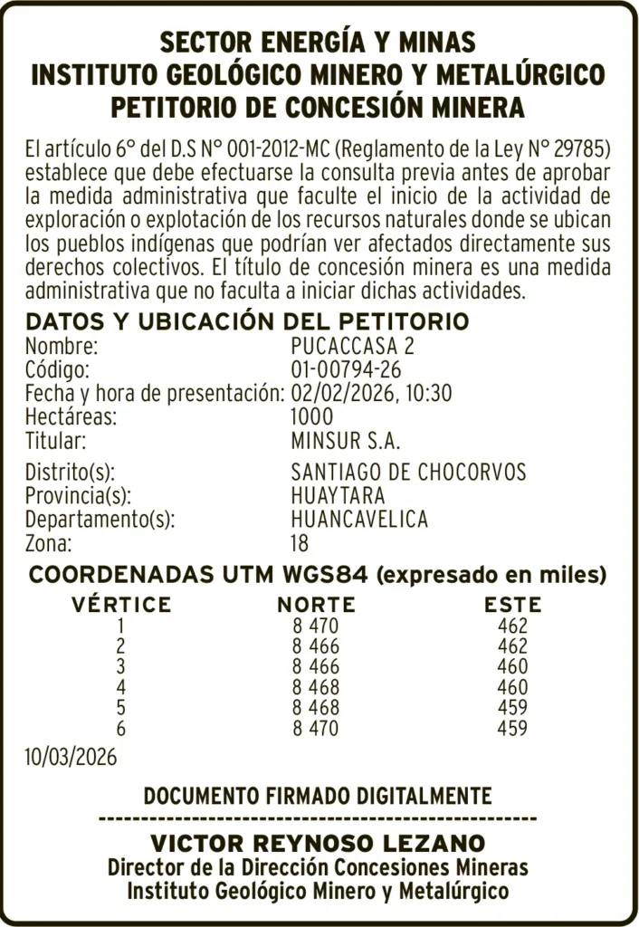PETITORIO MINERO HUANCAVELICA – VIERNES 10/ABR/2026