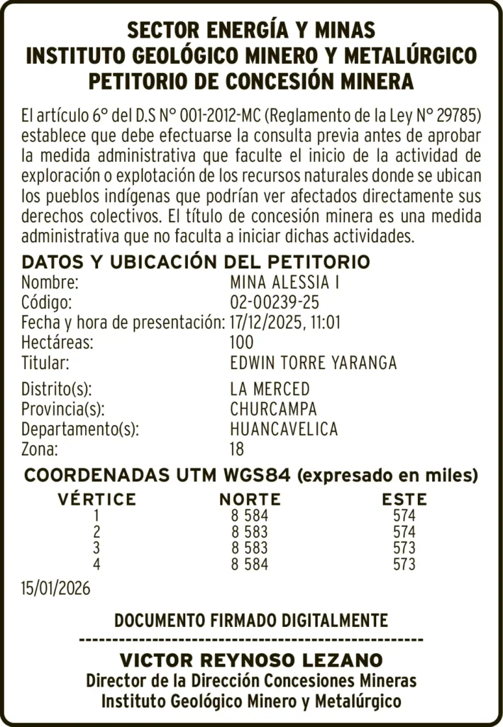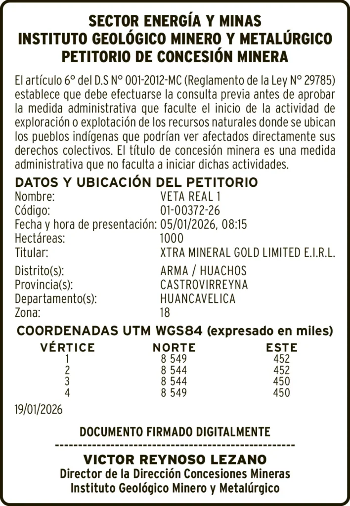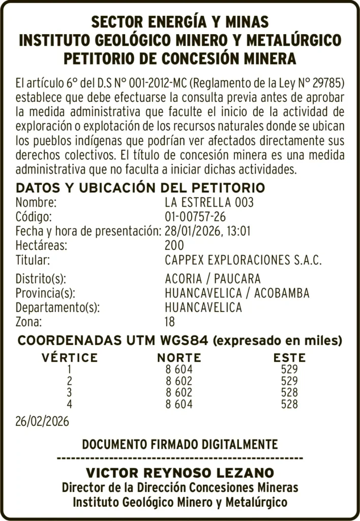 PETITORIO MINERO HUANCAVELICA – VIERNES 13/MAR/2026