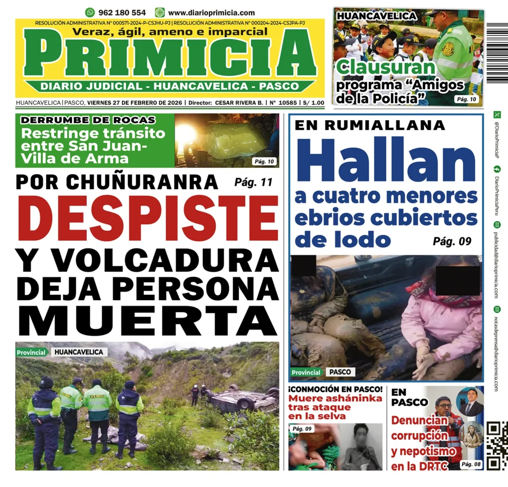 PRIMICIA.- Efectivos policiales de la comisaría del distrito de Villa de Arma se trasladaron hasta el km 92+110 de la vía nacional Huancavelica-Chincha del sector de Accomachay dónde constataron un accidente de tránsito (despiste y volcadura) con lesiones y daños materiales.
