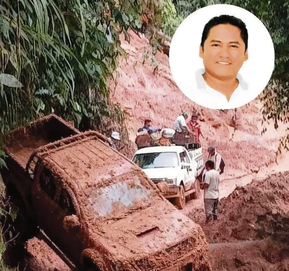 PRIMICIA.-  El precandidato Misael Crisben Pastrana estuvo a punto de ser sepultado por un huaico de gran magnitud mientras se dirigía al centro poblado de Cosmos, en el distrito de Pangoa, provincia de Satipo.