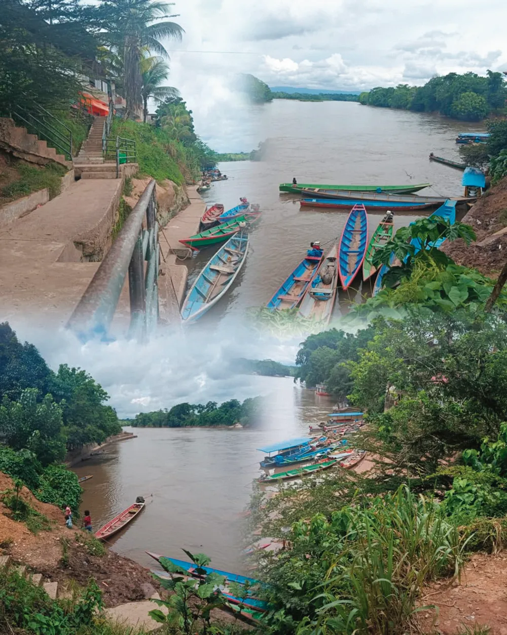 Puerto principal de Puerto Bermúdez. Rampa fluvial, punto de constante tránsito de botes y motores.
