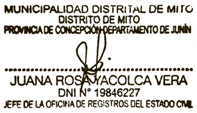 Ante la Oficina de Registros del Estado Civil de la Municipalidad Distrital de Mito, se viene tramitando el Expediente Administrativo N° 1920 de fecha 21 de Noviembre del 2025, presentado por Doña Elba Julia Núñez Arroyo en el que solicita la Rectificación Administrativa de su Partida de Matrimonio con Reynaldo Montúfar Figueroa, respecto al dato y DOÑA dice: Elba Julia Múñez Arroyo, debiendo decir el dato y DOÑA Elba Julia Núñez Arroyo, contando con los documentos sustentatorios de la solicitante; en lo sucesivo se considerará «Rectificado el dato y DOÑA en la Partida de Matrimonio de los inscritos»; habiéndose cumplido con el Art. 73 del D. S. N° 015-98-PCM, Reglamento de Inscripciones y la DI-008-DRC/001—————–