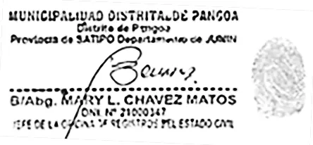 Ante la Oficina de Registro de Estado Civil que funciona en la Municipalidad Distrital de Pangoa, a cargo de la Jefe B/Abg. Mary Chávez Matos, se ha presentado la ciudadana Sra. AMELIA YARANGO RAMOS, identificada con DNI N° 76598293 y Acta de Nacimiento N° 645465-1998, generándose el Exp N° 318068-TD, del día 02 de Febrero del 2026, quien solicita la Rectificación Administrativa de su Acta de Nacimiento inscrito en el Folio N° 645465, Libro N° 65, Año 1998, en el sentido que, existe Error en el cuerpo Principal del Acta en los RUBROS PRIMER APELLIDO DE LA TITULAR DEL ACTA Y DATOS DEL PADRE Y DECLARANTE, Habiendo consignado PRIMER Apellido: YARANGO, siendo lo Correcto: YARANGA, así mismo como PADRE Y DECLARANTE se consignó a EMILIANO YARANGO ROMAN, Siendo lo correcto: EMILIANO YARANGA ROMAN. Tal como demuestra con el Acta de Nacimiento de su señor Padre Expedido por al OREC de la Municipalidad Distrital de Colcabamba, Provincia de Tayacaja. Ampara su petición conforme a lo dispuesto en la Directiva DI-008-DRC/001 y Artículo 73° D.S. 015-98-PCM.