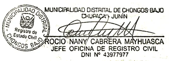Ante el Jefe de Registro Civil de la Municipalidad Distrital de Chongos Bajo, comprensión de la provincia de Chupaca, Región Junín, con Expediente Nº 017-2025, de fecha 13 de Marzo del 2026, BERTHA GUTARRA RAMIREZ identificada con DNI: 20116908 viene tramitando la rectificación administrativa del acta de Nacimiento de su padre N° 3002144377 del año 2015, perteneciente a BASILIO GUTARRA BORJA, se evidencia omisión en el segundo apellido de los progenitores, Dice; EUSEBIO GUTARRA Y NATALIA BORJA, debiendo ser: NATALIA BORJA CASTILLA Y EUSEBIO GUTARRA POVEZ y no como se ha consignado. Quienes se consideren afectados en la presente rectificación administrativa, podrán presentar su oposición dentro del plazo de (15) días hábiles siguientes a la fecha de la siguiente publicación. Comunicación que se realiza en conformidad con el artículo 73° del D.S. 015-98-PCM.