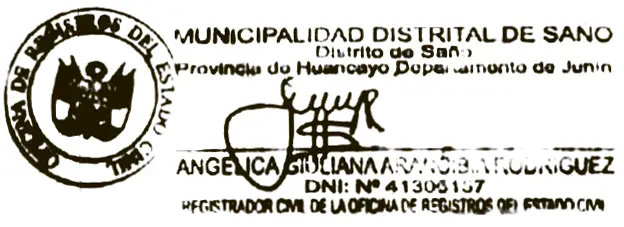 Ante la Oficina de Registro Civil de la Municipalidad Distrital de Saño, la Señora DIANA YUSSELY LOPEZ RODRIGUEZ, a través del expediente N°4025 viene tramitando la rectificación administrativa de su acta de Nacimiento, inscrito el 26 de junio de 1989, con número de acta 3256, donde solicita se rectifique: