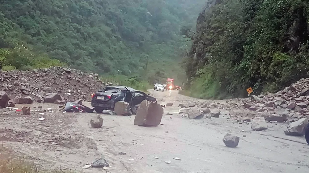 ROCAS APLASTAN: A UN AUTOMÓVIL TRAS CAÍDA DE HUAICO