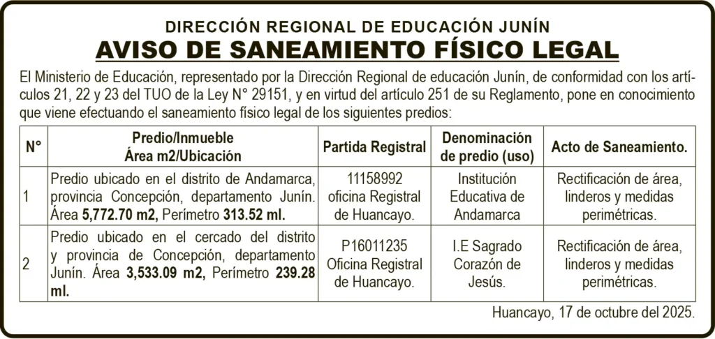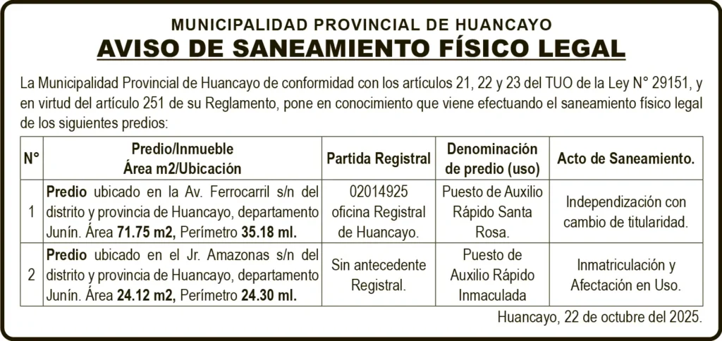 AVISO DE SANEAMIENTO FÍSICO LEGAL