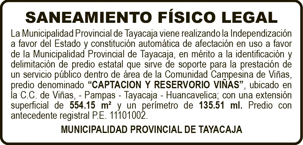 HUANCAVELICA SANEAMIENTO FÍSICO LEGAL SANEAMIENTO FÍSICO LEGAL – MIÉRCOLES 29/OCT/2025 1 min read 29 de octubre de 2025 SANEAMIENTO FÍSICO LEGALMUNICIPALIDAD PROVINCIAL DE TAYACAJAANTECEDENTE REGISTRAL P.E. 11101002Continue ReadingPrevious NOTIFICACIÓN DE PRETENSIÓN – MIÉRCOLES 29/OCT/2025Next PARA COPA LIBERTADORES: CRISTAL, MELGAR Y ALIANZA ATLÉTICO POR ÚLTIMO CUPO
